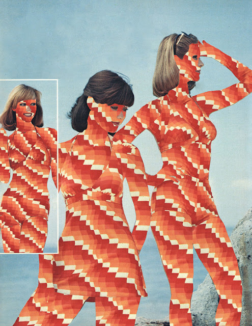 Using vintage catalog imagery, each piece in this series explores the realtionship between the patterns that exist in fashion and the patterns that are found in human genetics. While a clothing pattern is designed to make the wearer look and feel different, when it is expanded over a model's exposed skin it instead represents the biological and emotional framework that we all share. Acknowledging these similarities encourages empathy, compasion and understanding.